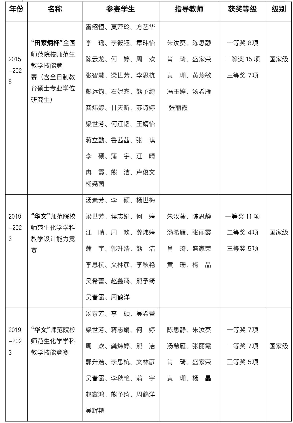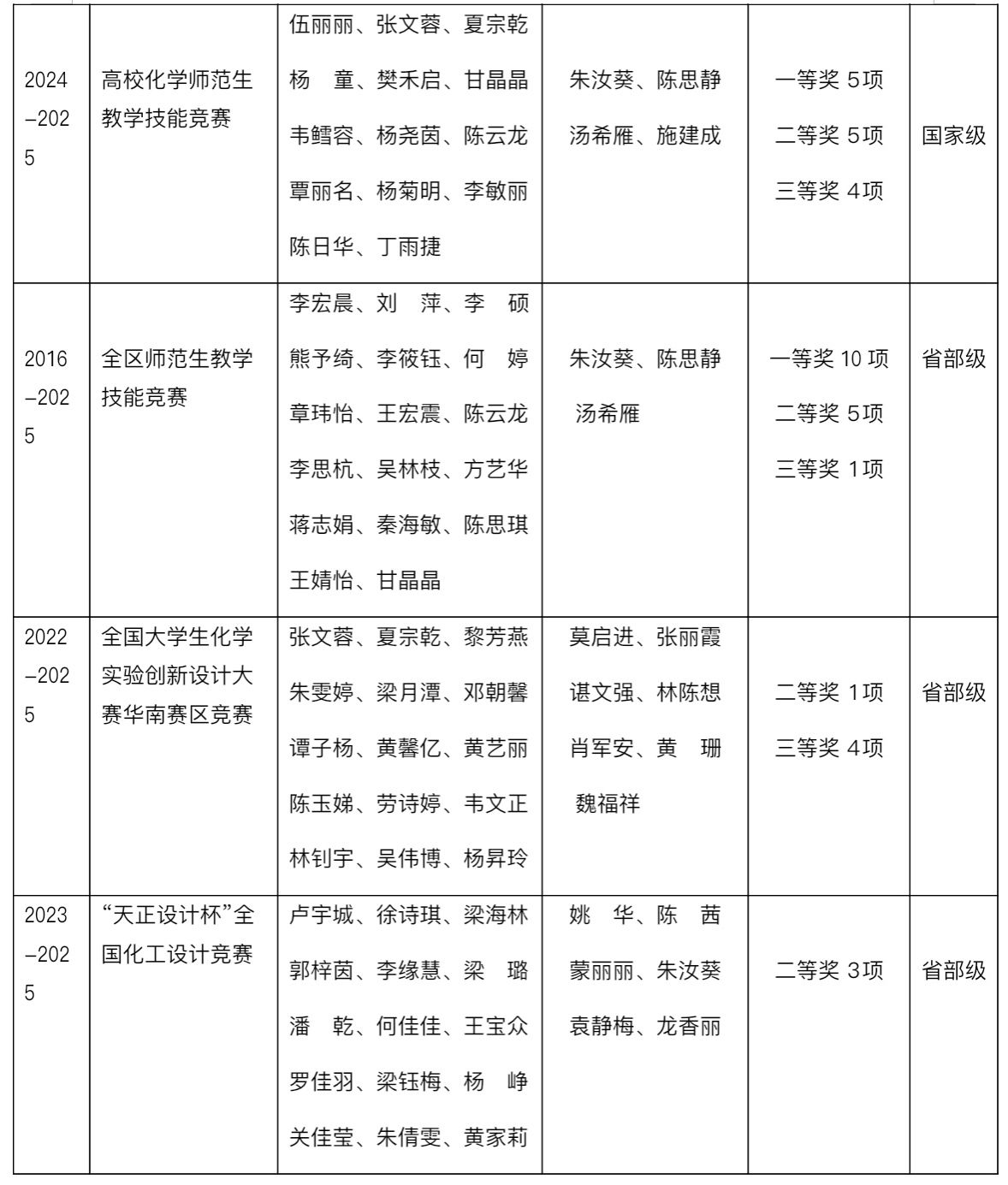 化学与材料学院学科专业竞赛自治区(省)级以上获奖统计