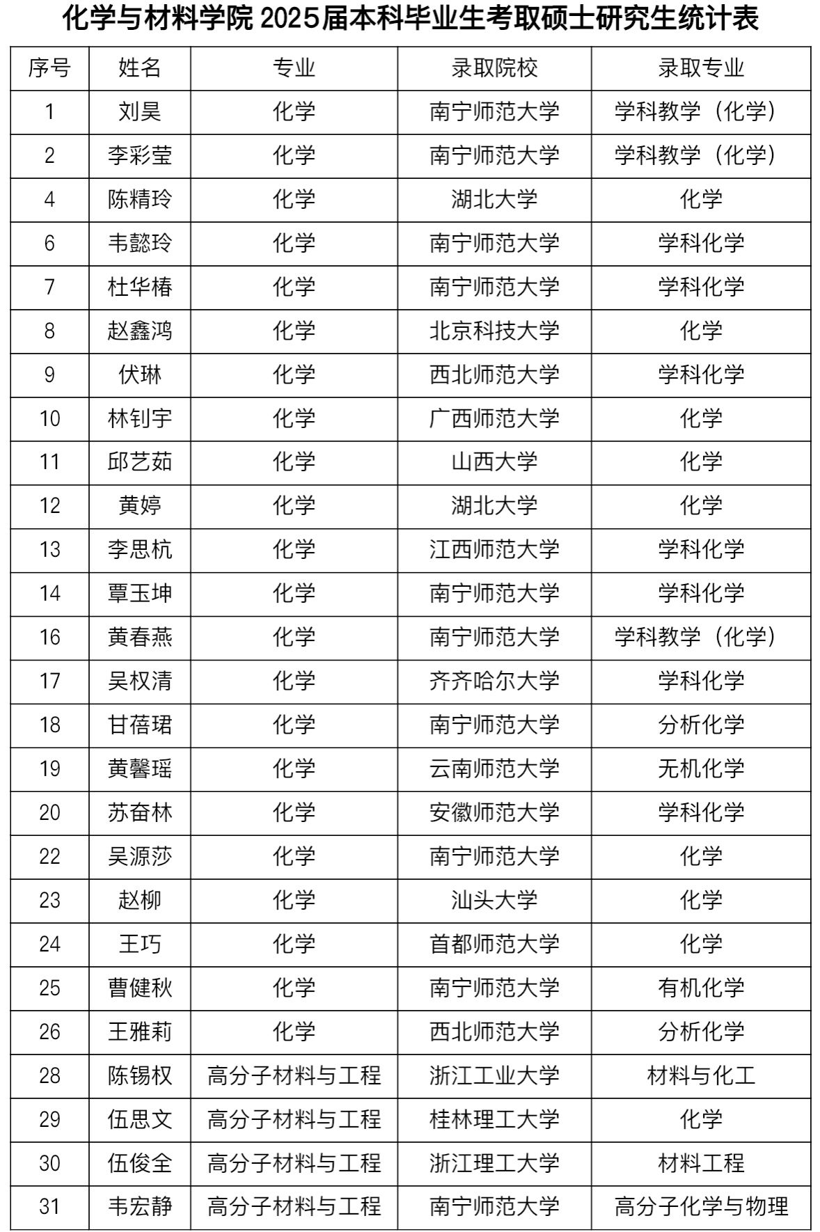 2025届本科毕业生考取硕士研究生统计表
