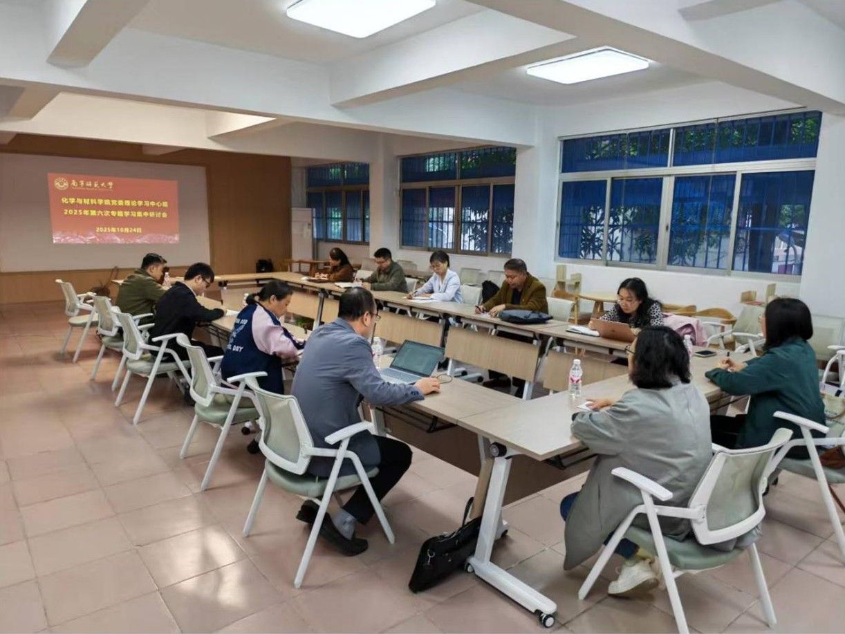 为深入学习贯彻习近平新时代中国特色社会主义思想,持续推进理论学习走深走实,10月24日上午,化学与材料学院在明秀校区工会楼二楼会议室召开2025年第六次集中学习专题研讨会。学院党委书记陈宗武主持会议并领学,党委委员做重点发言,党委理论学习中心组成员参与研讨,学校党委纪委书记李美清到会巡听并作点评。
