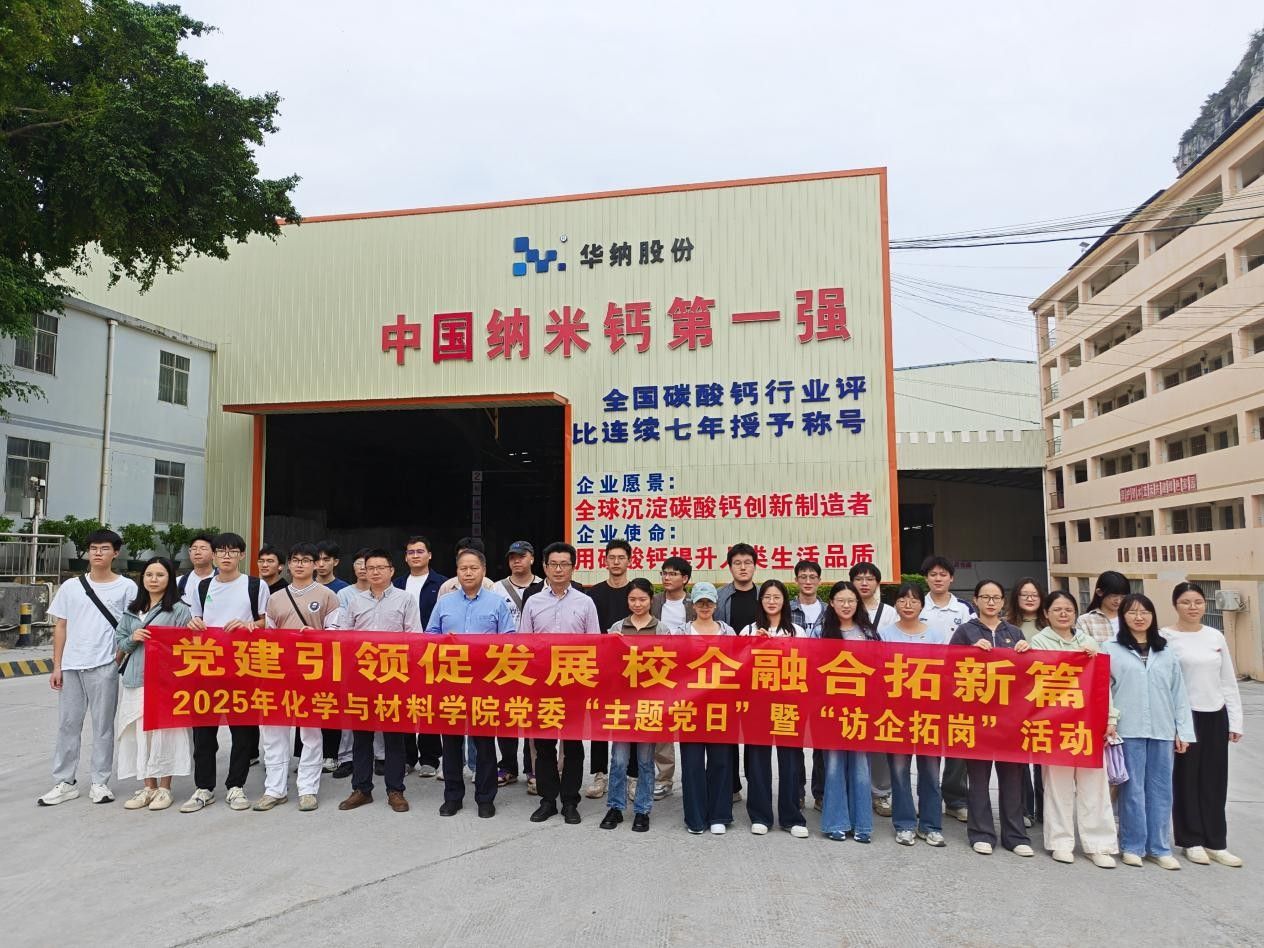 为深化校企合作、拓宽学生视野、提升专业认同并学习企业党建,10月29日下午,化学与材料学院党委书记陈宗武、院长苏炜带队,组织研究生第一党支部师生赴广西华纳新材料股份有限公司,开展以“党建引领促发展,校企融合拓新篇”为主题的党日活动暨访企拓岗活动,进行参观交流与学习。