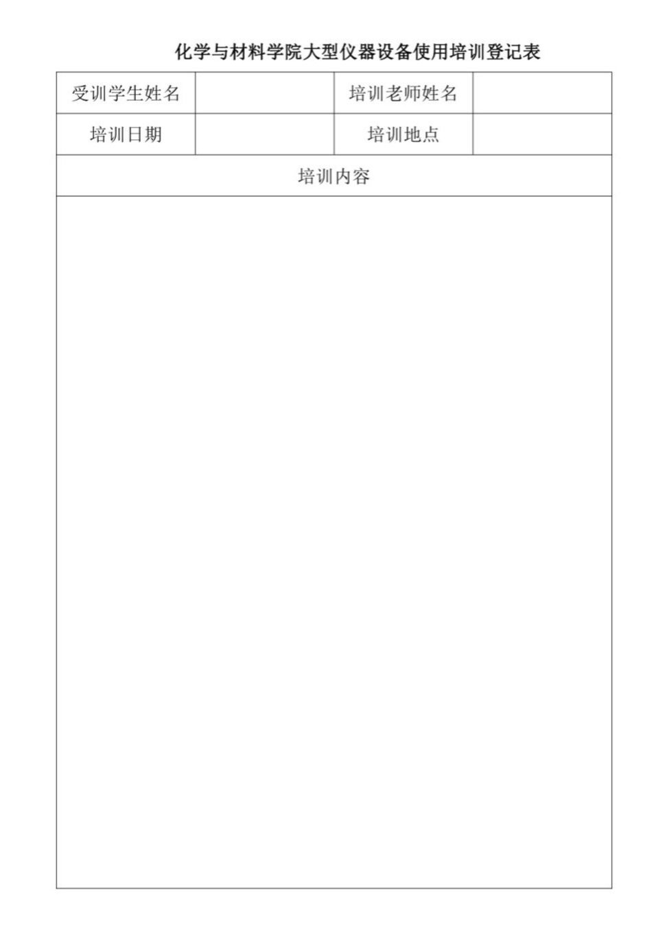(一)使用大型仪器设备前必须经过仪器使用培训,接受由导师或仪器负责人的培训,并填写《化学与材料学院大型仪器设备使用培训登记表》备案,没经过培训或培训后不填写登记表就直接使用仪器的,每次扣 10 分。