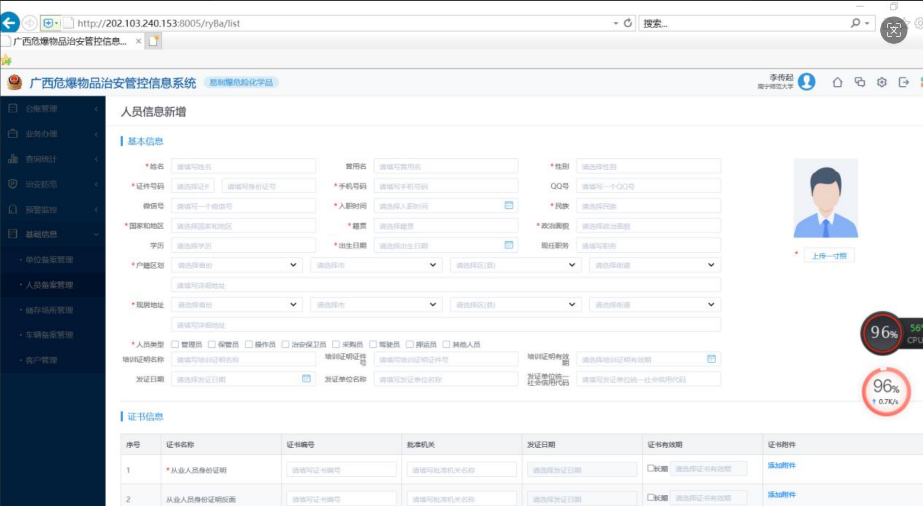 三、在广西危爆物品治安管控信息系统向管辖公安局进行购买人个人信息备案及申购申请: